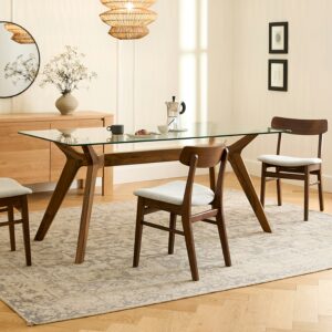 Made of solid wood base and a tempered glass top, the Emmer Dining Table combines major design impact with a light and airy feel. Sculptural legs add museum-worthy visual interest — without the cost of admission.