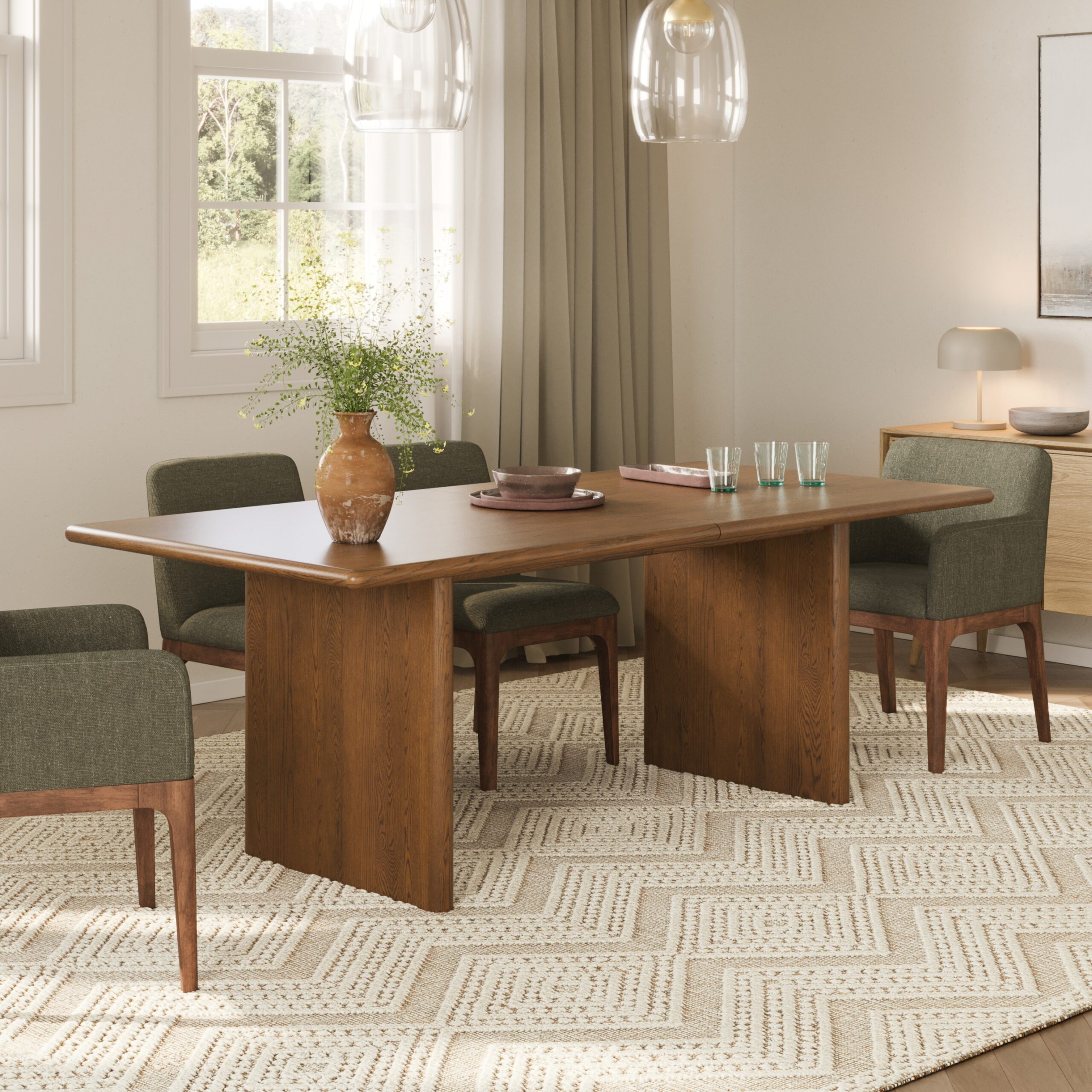 The Torme is characterized by simple lines and thoughtful details. The softly rounded edges are subtle but impactful: the commanding legs are just impactful. A drop-in leaf can take this table from six to eight seats… yet another simple, thoughtful detail.